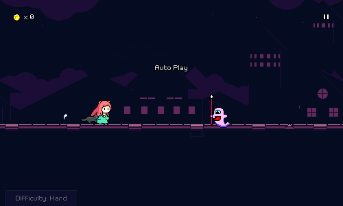 The "mini ghost" was a really low-effort one since there's no animation, just a single image that floats up and down in the same way as the enemy ghosts. The sprite is just a smaller version of the enemy ghosts, with a little cute bow on top. Here's that one in action: